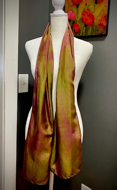 Hand Painted Hand Dyed Silk Scarf • Ochre and Burgundy
