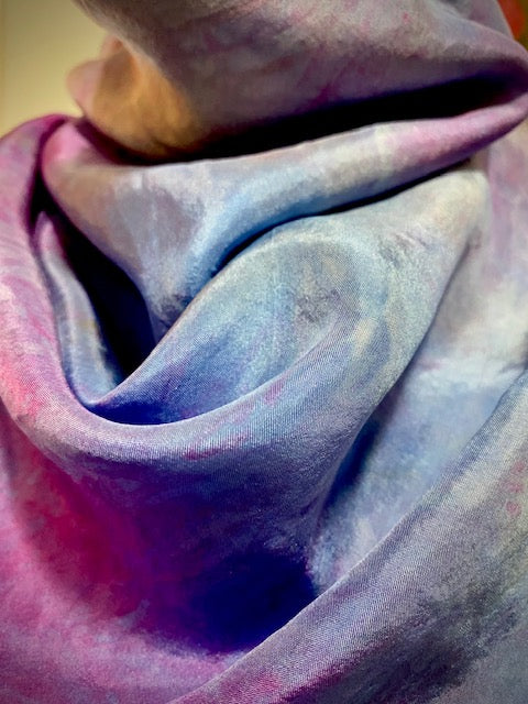 Hand Painted and Hand Dyed Silk Scarf • Pink and Blue