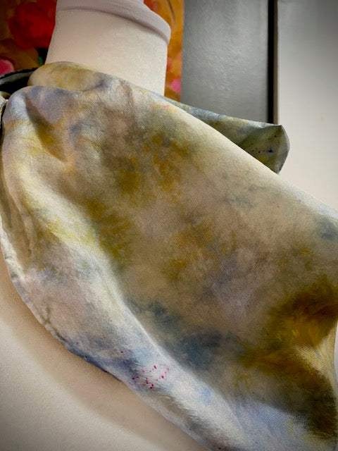 Please note that each piece is hand dyed and is quite unique. You will find splotches and deviations of colors which is absolutely normal and part of the charm of these scarves.